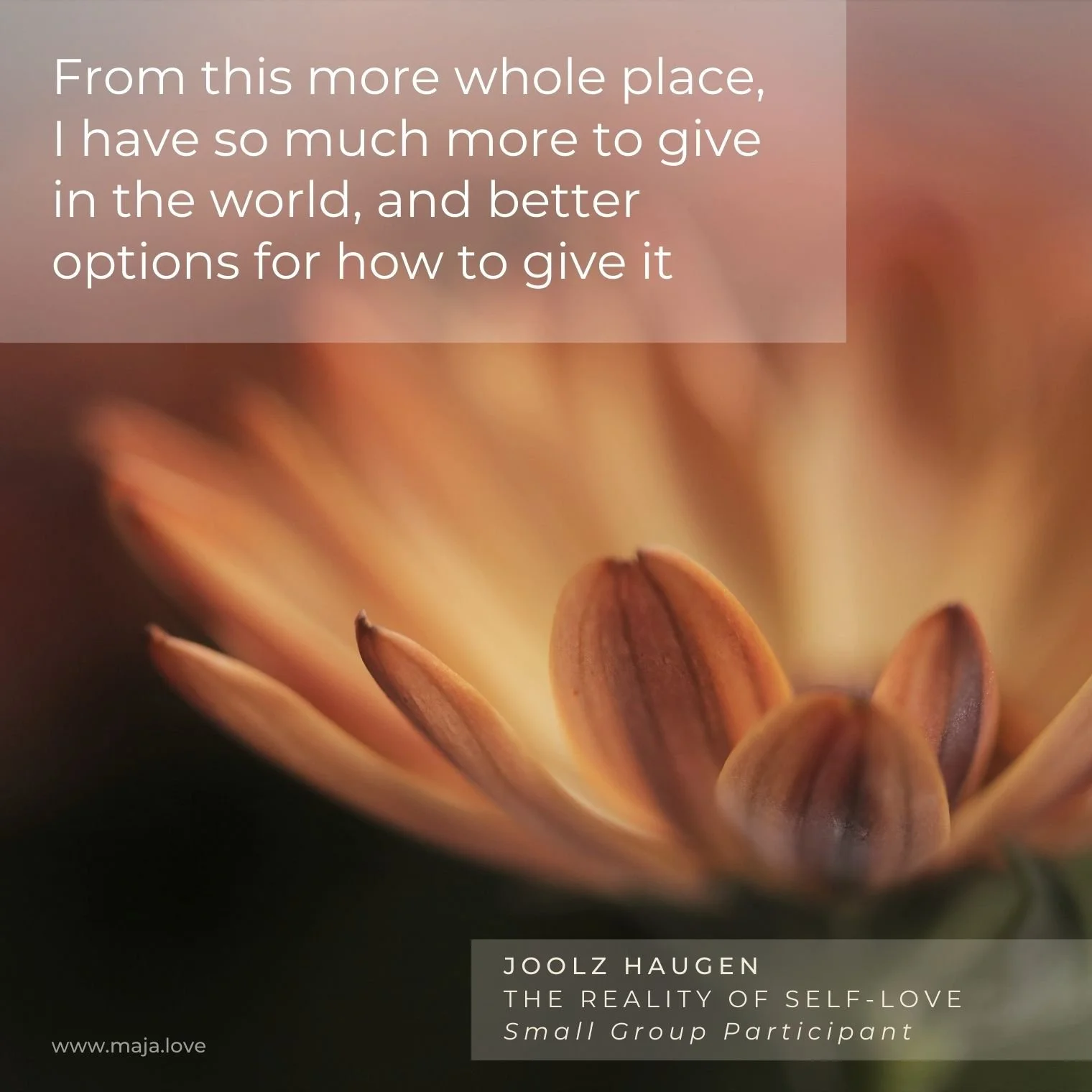 The following memes originated from my dialogue series The Reality of Self Love and the small groups who shared the sacred journey through the program. Beautiful nuggets of wisdom are to be found in each of us, thus I have included choice statements from the small group participants and the “guest teachers.” Enjoy!