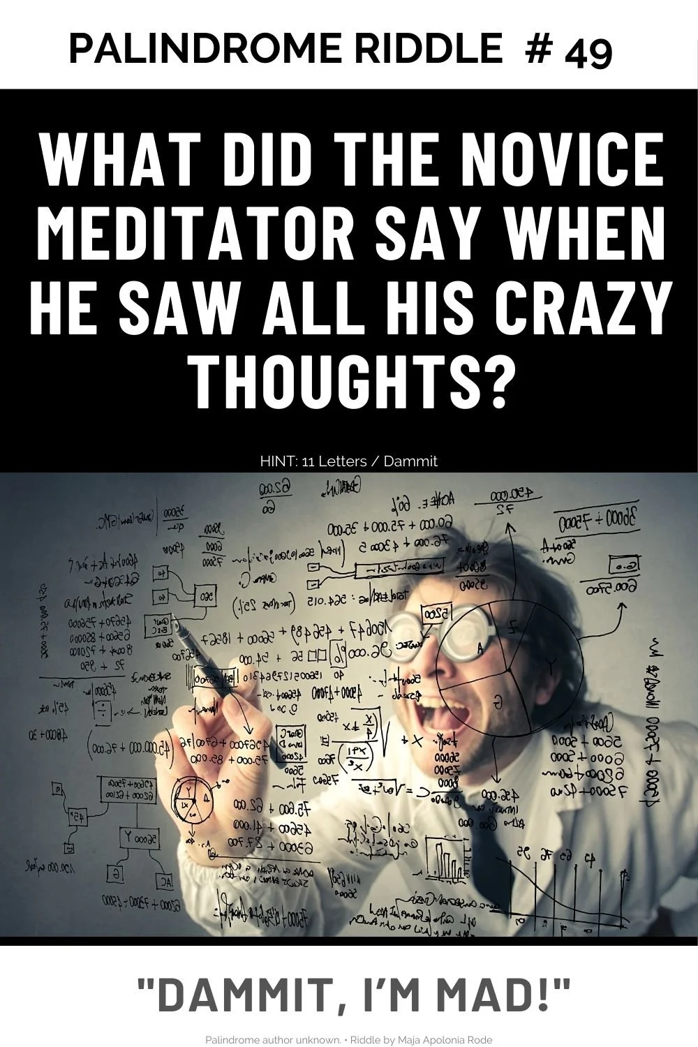 I first started making up these palindrome riddles in early 2020, just as news of the pandemic was getting real and things were starting to not make as much sense as before.