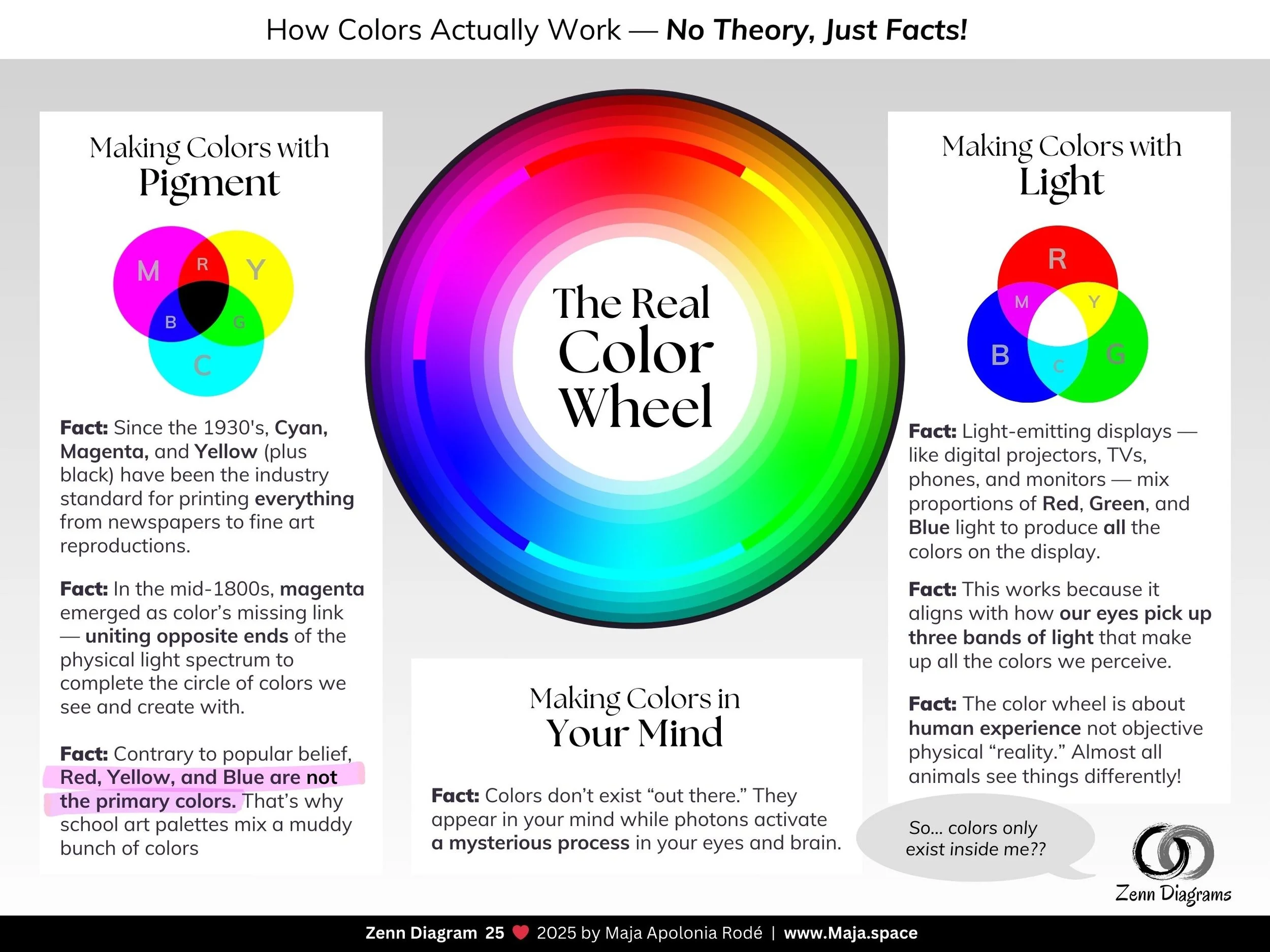 This is one of those simple things that ought to be common knowledge. But even as an artist, up until recently I still thought Red, Yellow, and Blue were the primary colors. Not so! The implications of this shift in education, art, and understanding are profound.